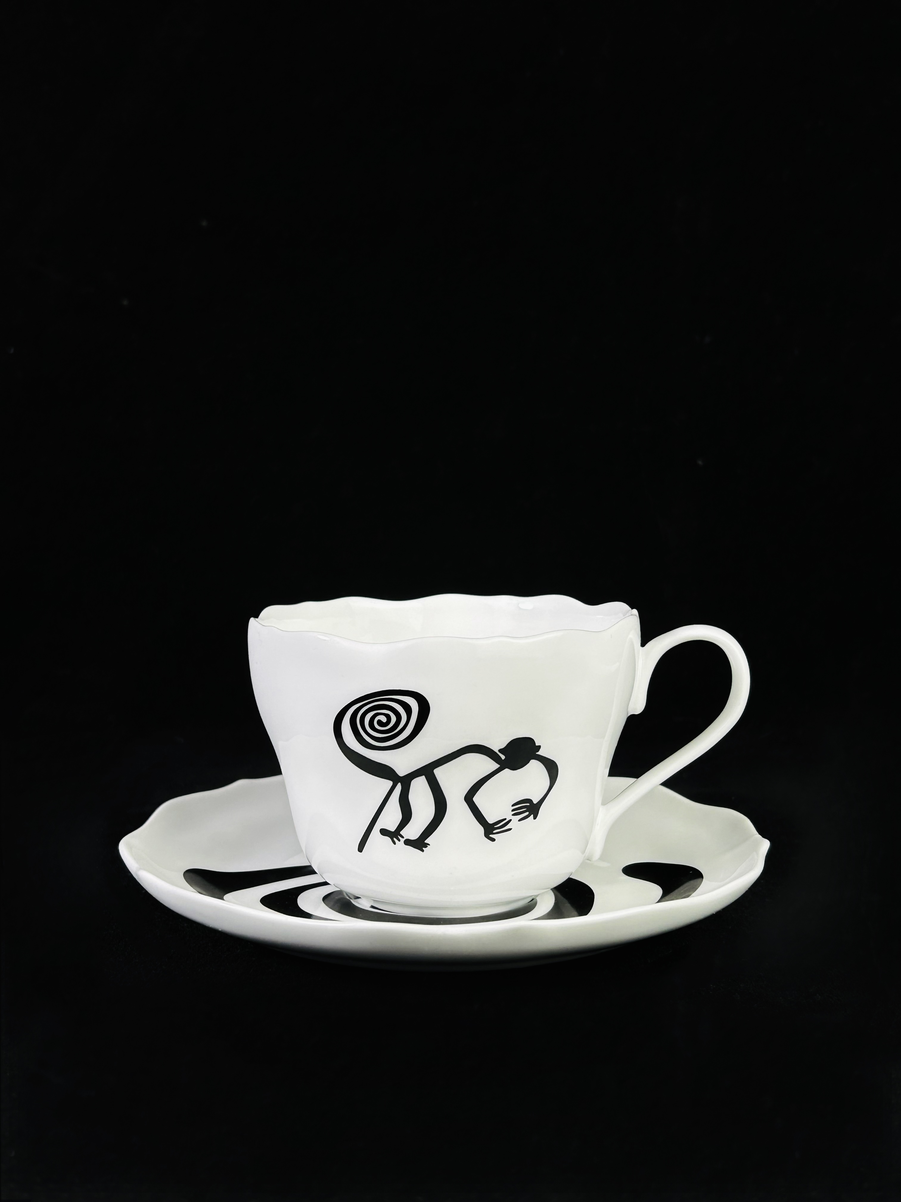 客戶定制 現代黑白極簡花朵咖啡杯碟