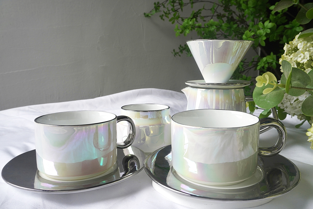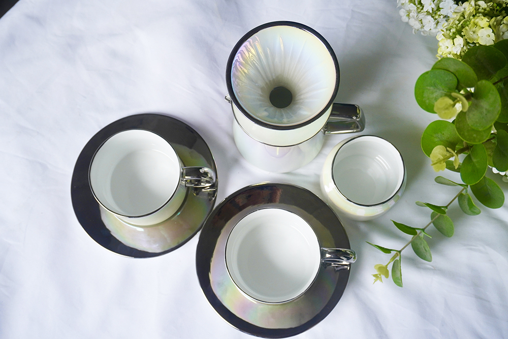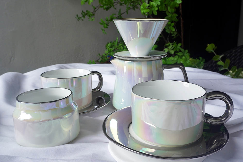 客戶定制 鍍銀炫彩珍珠白陶瓷咖啡具