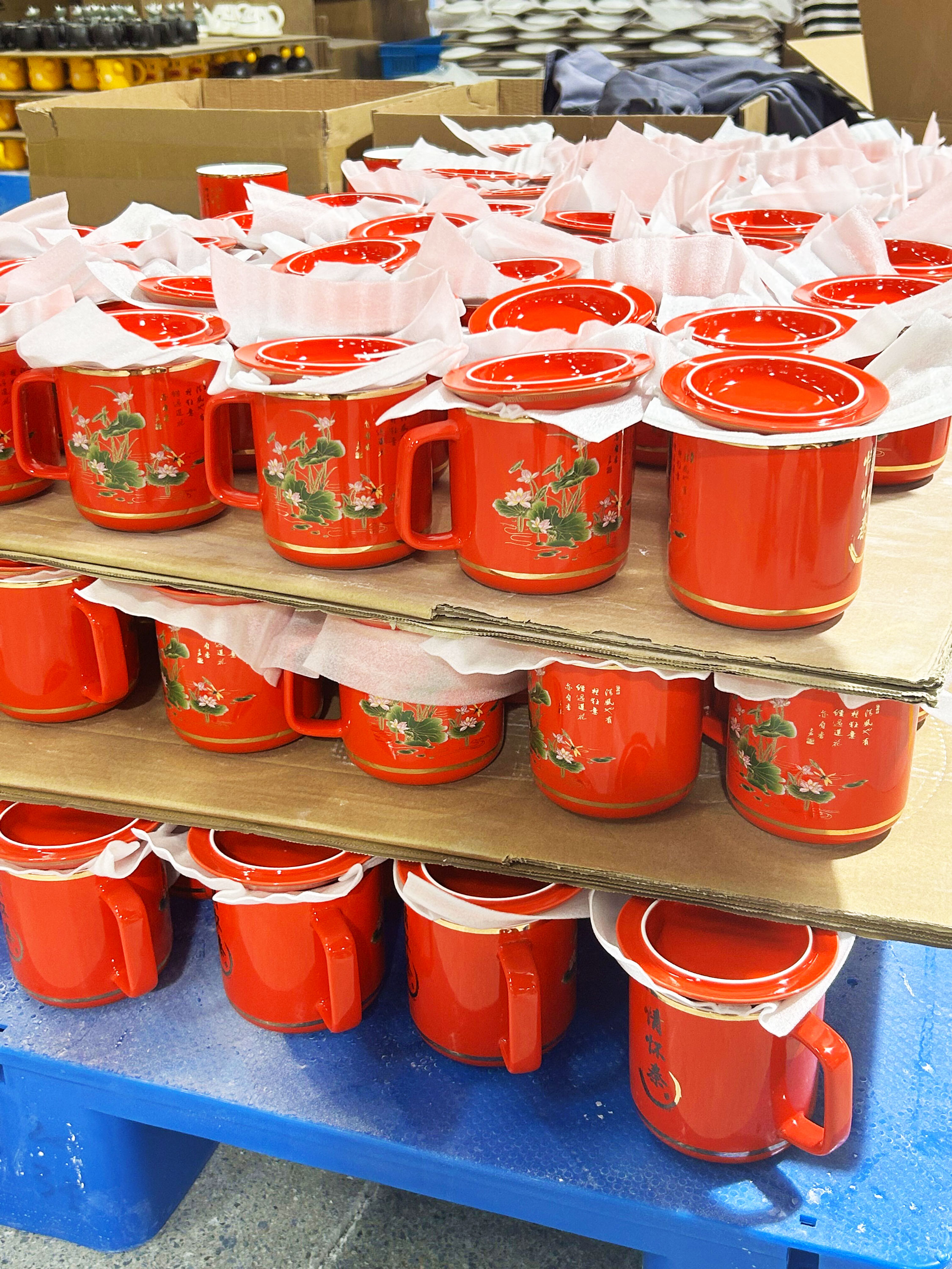 客戶找到我們,想要定制一批描金的茶杯,經過不斷設計調整,最終選定,客戶很滿意!下面是產品的大貨圖: