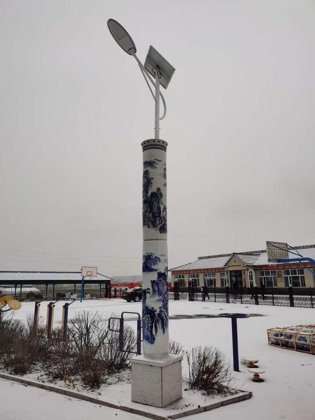 陶瓷燈柱的配置,如下:高1.9米,直徑0.45米,每根兩節(jié),一套兩根,陶瓷燈柱畫面主要以山水畫為主,每一節(jié)下面打一個洞,寫景德鎮(zhèn)制,由于顧客不知道怎么安裝,所以派了專業(yè)人員去指導安裝,本次的運費也我們這邊出的。來看看產品:
