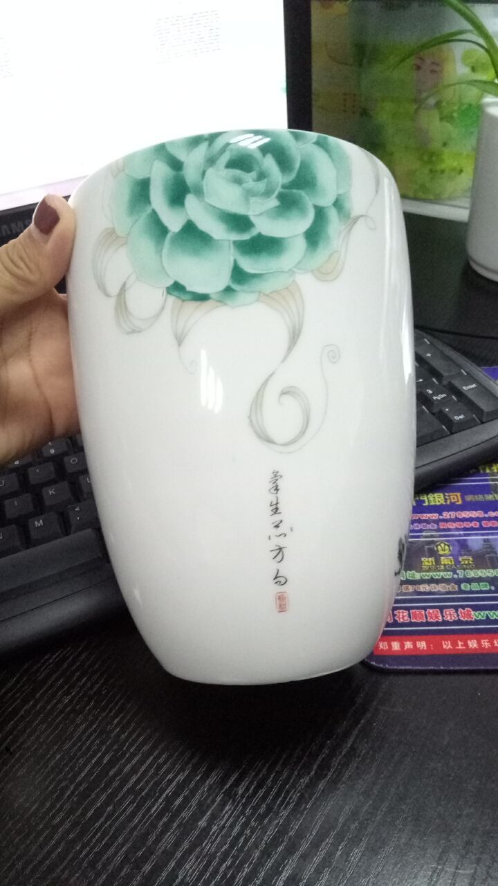 客戶定制 景德鎮手繪陶瓷綠葉文字加濕器