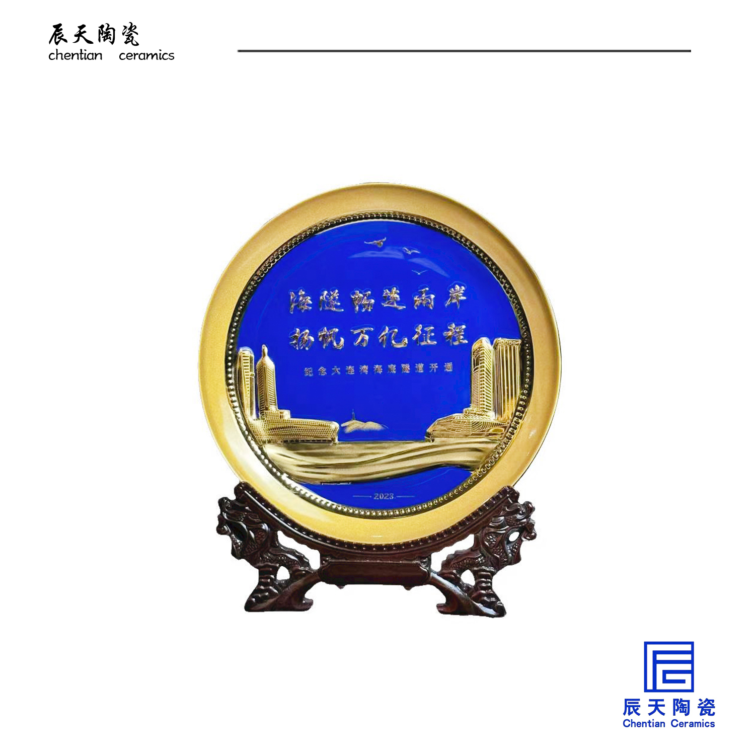 2023年5月1號(hào),大連海底隧道正式通車,我們也很榮幸制作了三千套紀(jì)念盤和茶具套裝,修改幾次,最終效果客戶非常滿意。下面是我們的一些大貨圖片: