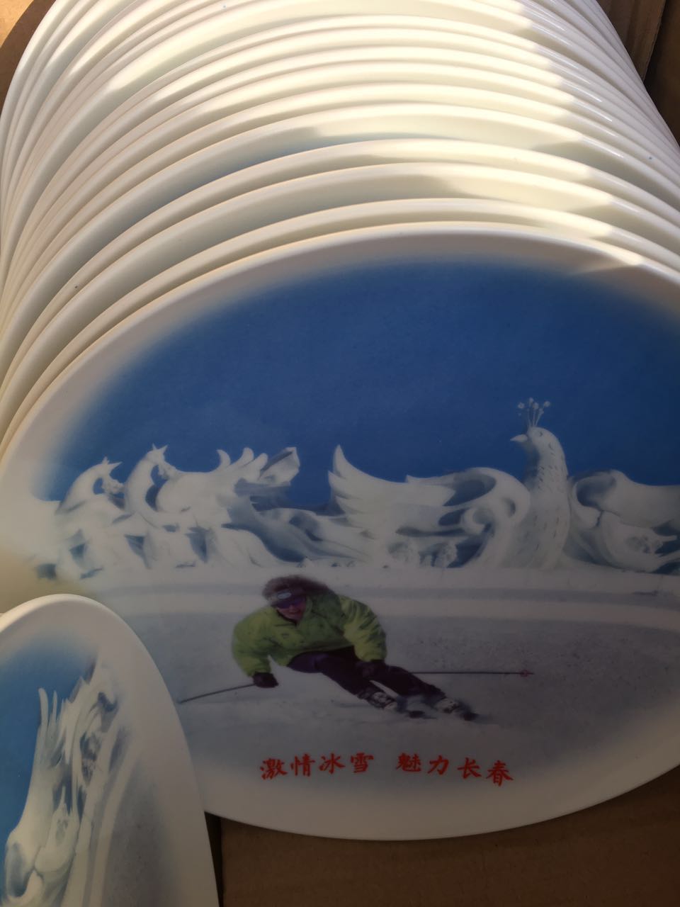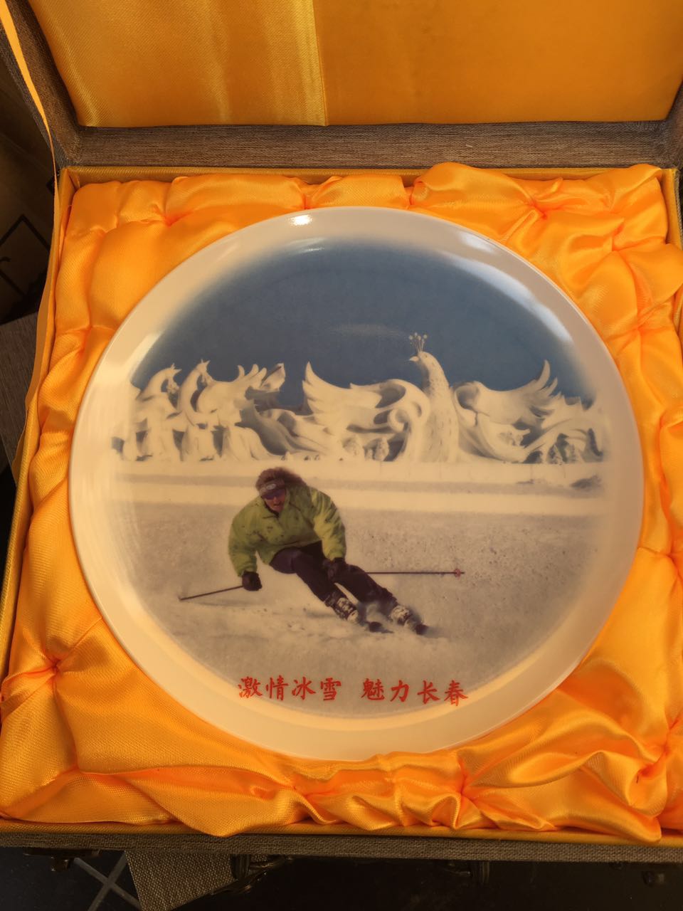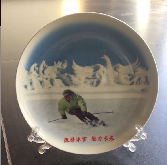 吉林長春旅游局定制 創意手繪滑雪陶瓷紀念盤