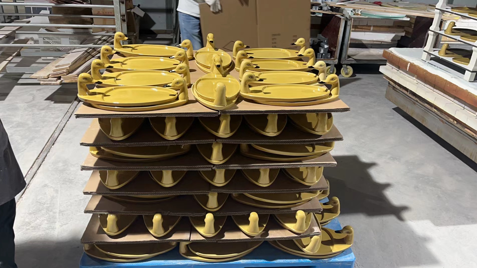 去年北京的客戶找到我們,想要給自家連鎖酒樓定制一批用來(lái)裝北京烤鴨的盤子,大概需要五百個(gè)。根據(jù)客戶需求,我們?cè)O(shè)計(jì)制作了三款設(shè)計(jì)圖,最終客戶選擇了這款和烤鴨一樣金色釉面的款式。根據(jù)客戶需求,我們先制作出了樣品,客戶表示非常滿意。產(chǎn)品圖片如下: