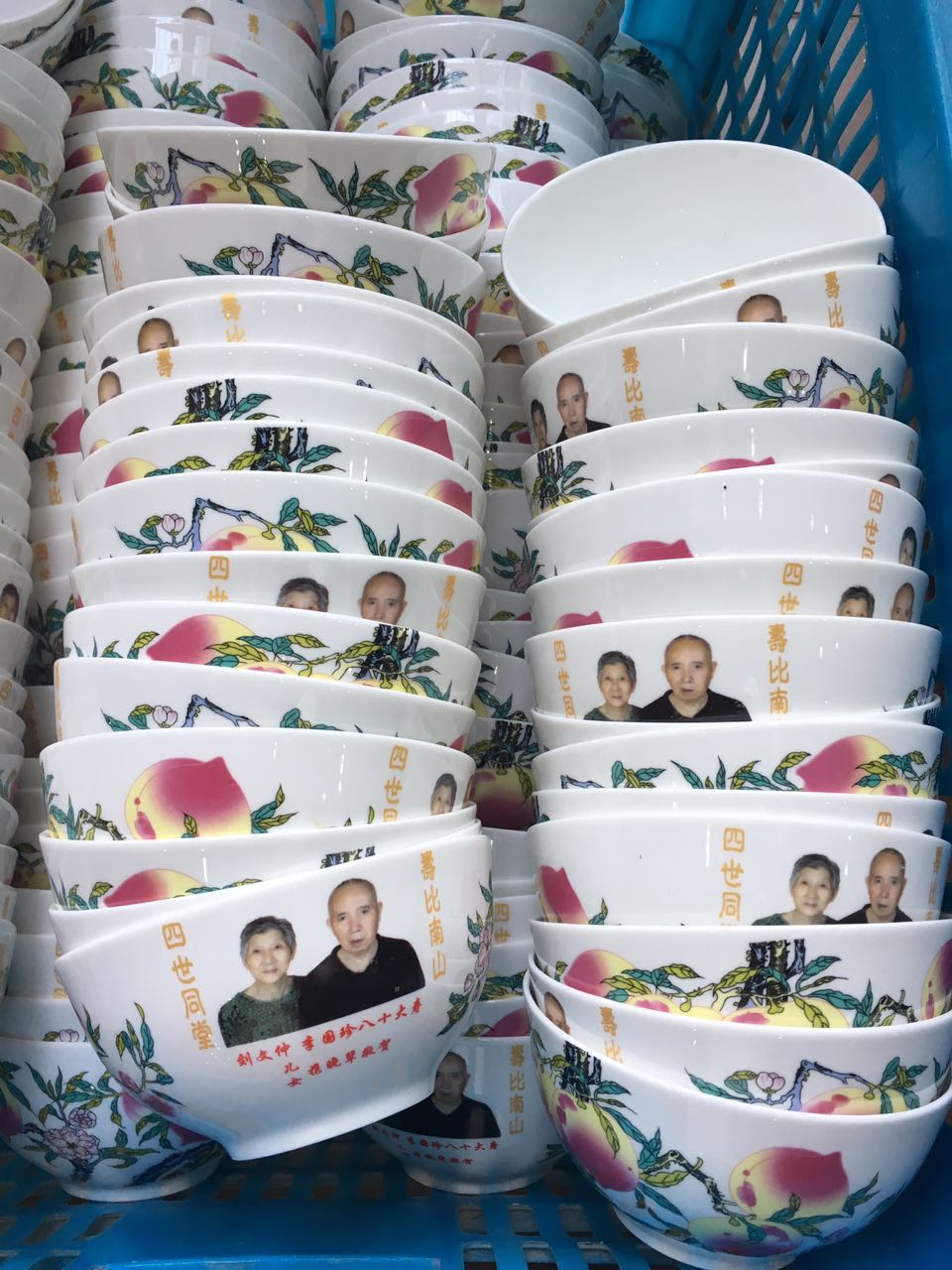 去年,成都的劉女士聯系到了我們,表示自己的父母八十歲了,想要為他們定制一批陶瓷壽碗。客戶想要印制照片和壽桃圖案,我們根據客戶提供的素材與元素,給客戶做好了設計圖。大貨下來,超出了客戶的預期,表示非常滿意。