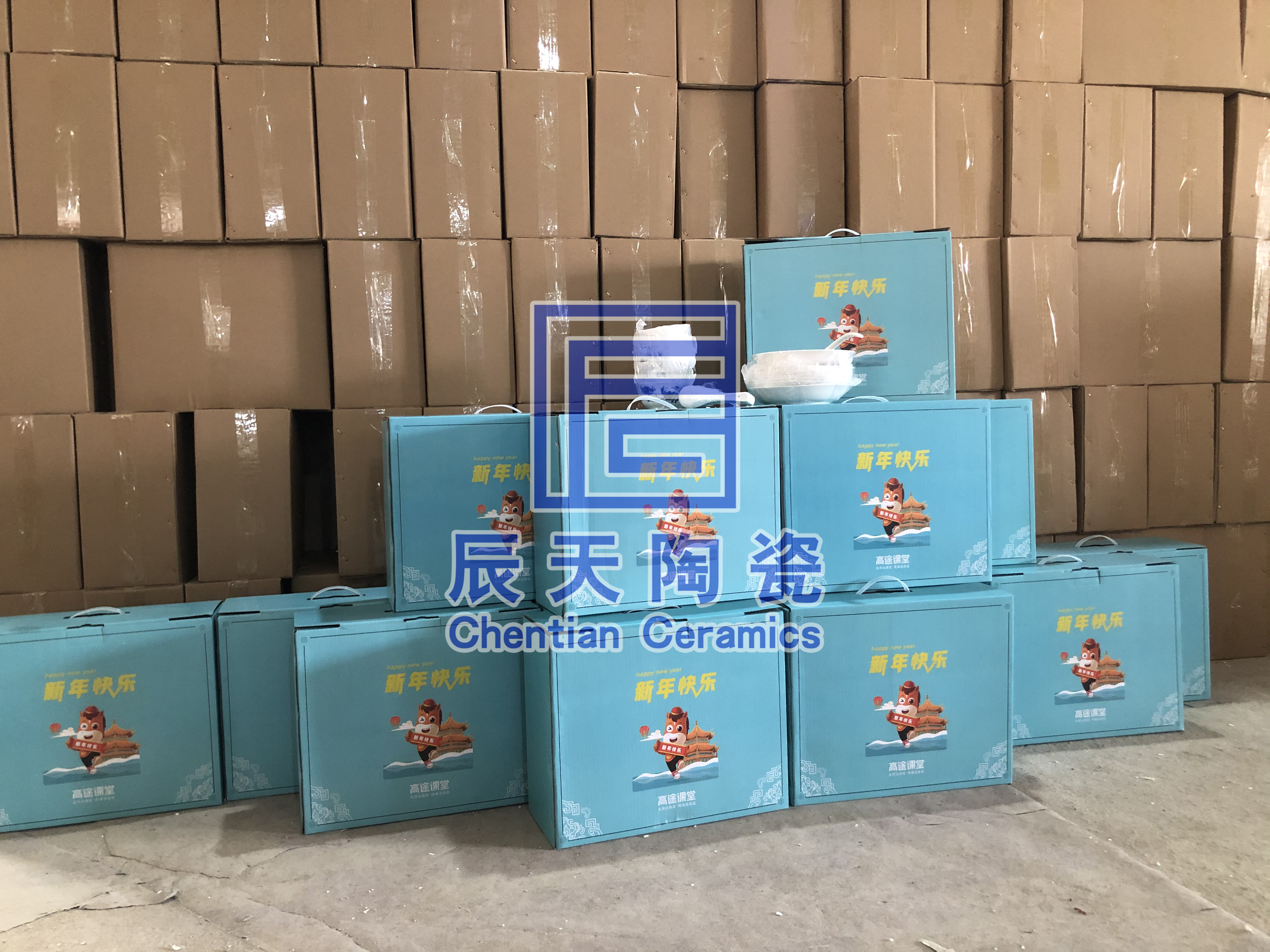 因為是發(fā)快遞陶瓷容易破損所以我們建議客戶包裝內(nèi)采用泡沫箱先封好在用紙盒箱,這樣有效的避免破損,同時這款陶瓷餐具作為禮品我們也是配備了賀卡,還有產(chǎn)品合格證。