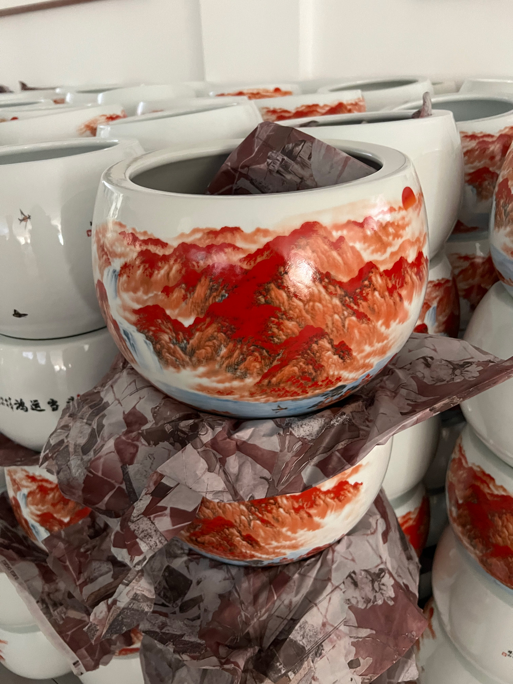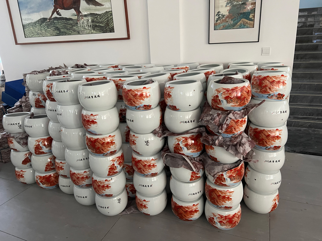 江山多嬌,天高任鳥飛,海闊憑魚躍。這款聚寶盆是我們公司做過的產(chǎn)品,當(dāng)時客戶要求要符合“聚寶”的意境,且要求圖案要大氣不落俗套,于是我們設(shè)計打樣了這款鴻運當(dāng)頭,也是紅色山水聚寶盆,客戶當(dāng)時就定下了一批。聚寶盆尺寸不大不小,剛好適合放在辦公室,亦或者是家中的玄關(guān)影壁,再養(yǎng)兩條魚,紅色鮮艷,抓人眼球的同時更添喜慶氣質(zhì),人旺了,財自然旺盛,這樣一瞧,可不就是聚財聚寶嘛~