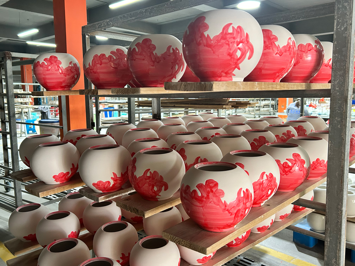 今年年初,接到一個(gè)很有趣的訂單。客戶(hù)想要制作一千個(gè)罐子,設(shè)計(jì)圖給到我們時(shí),我們都以為是一個(gè)花瓶呢。產(chǎn)品的釉面也是選用了中國(guó)紅這個(gè)顏色,且每個(gè)罐子的釉面部分需要一模一樣。我們也憑扎實(shí)的技術(shù),不負(fù)眾望的做了出來(lái)。客戶(hù)收到表示非常滿(mǎn)意。