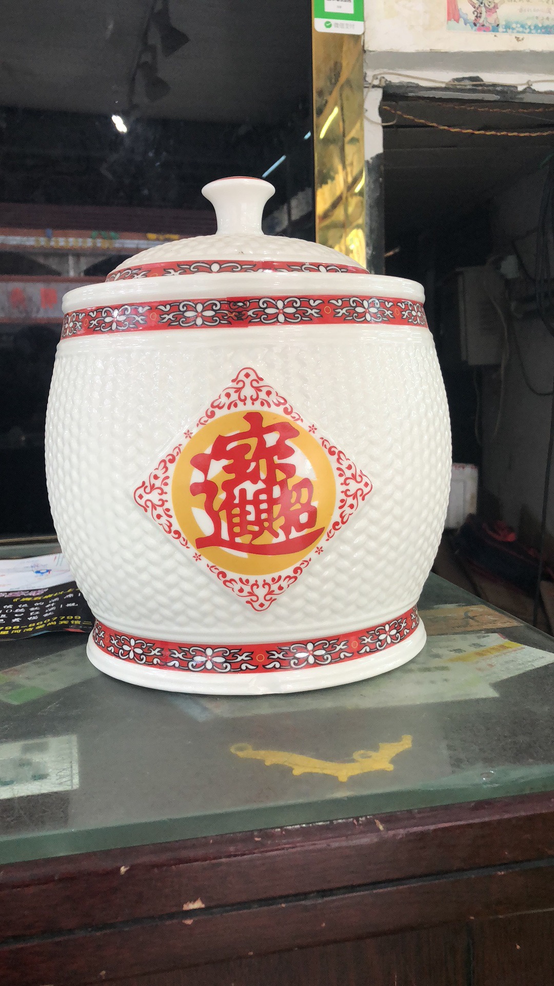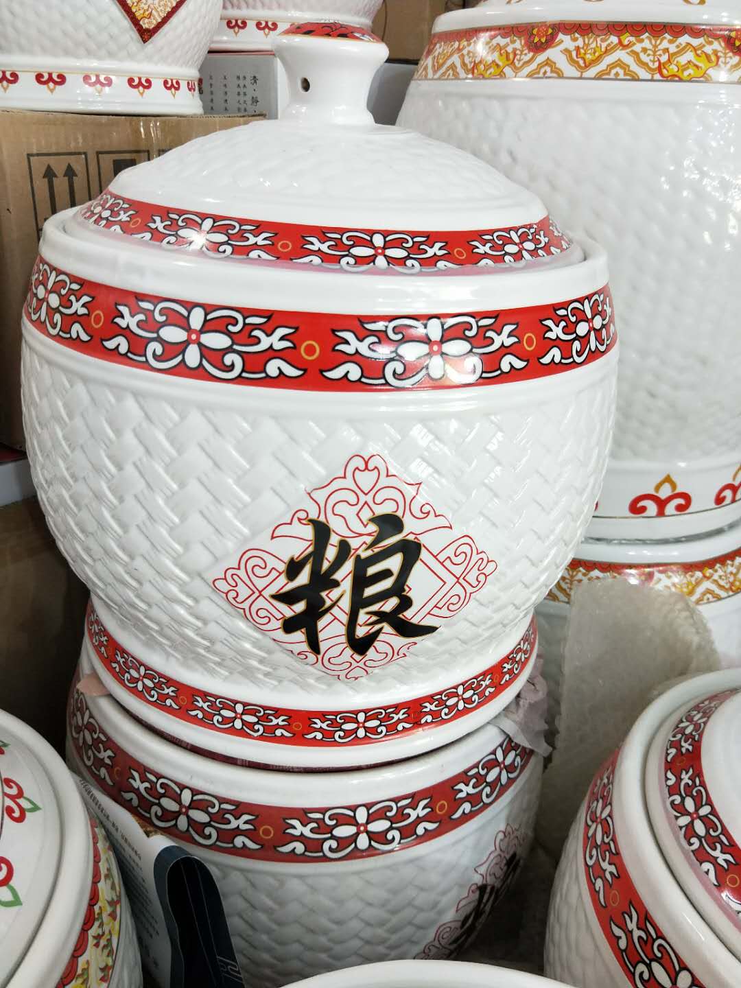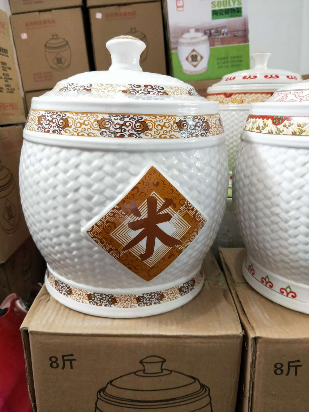 陶瓷米缸,盛放大米的容器。常見為5-20斤左右,因?yàn)槟蛢Υ娑淮蟊娛熘?