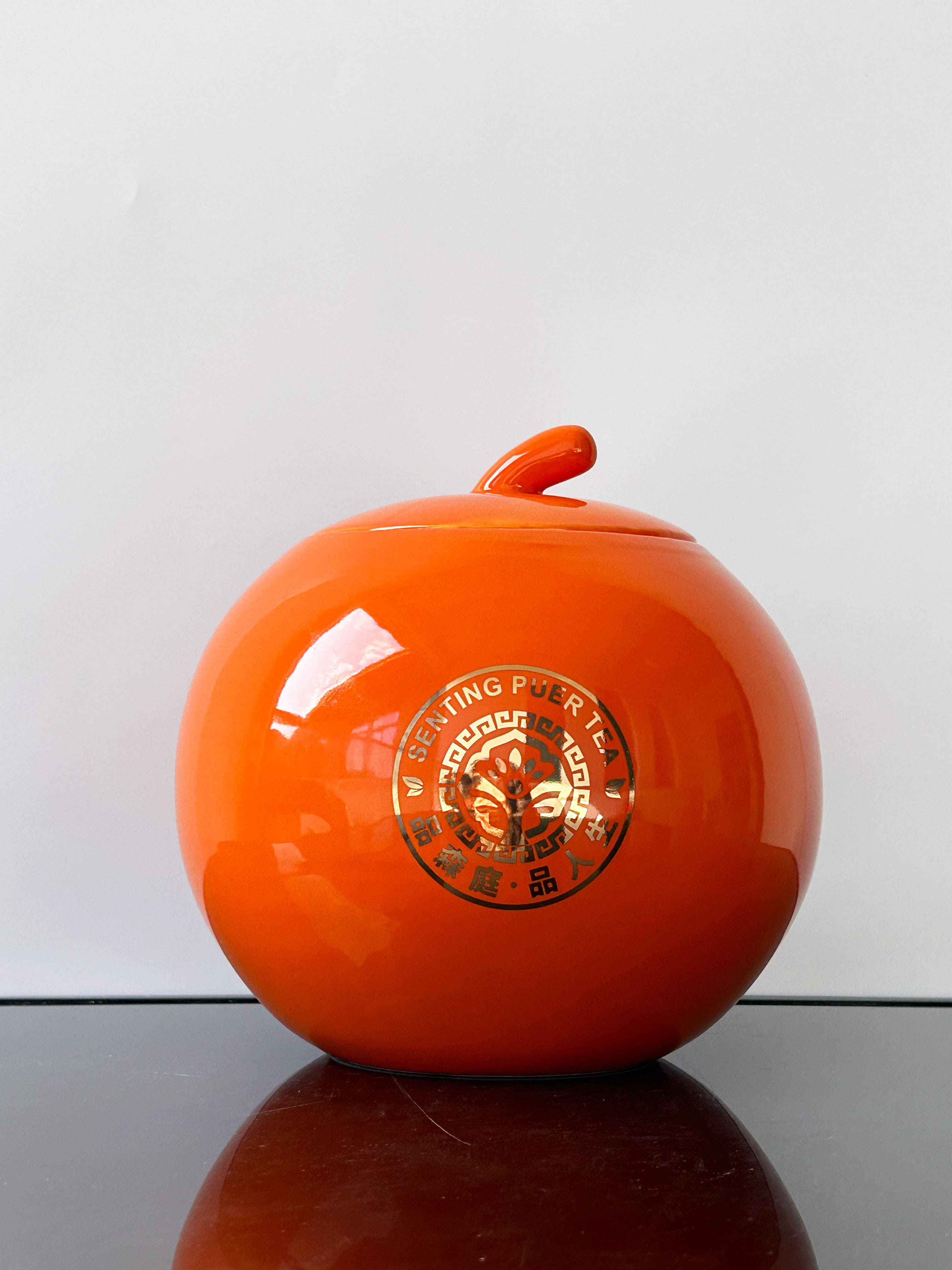 客戶定制 亮色系橙色陶瓷圓型茶葉罐