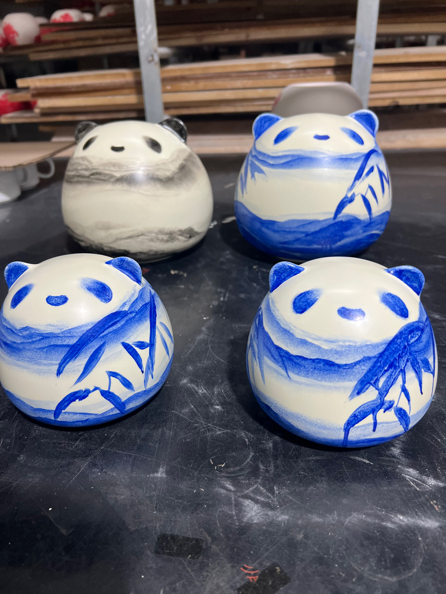 客戶找到我們,想要定制一批熊貓造型的茶葉罐,將產品制作出來后,客戶很滿意!下面是產品的大貨圖: