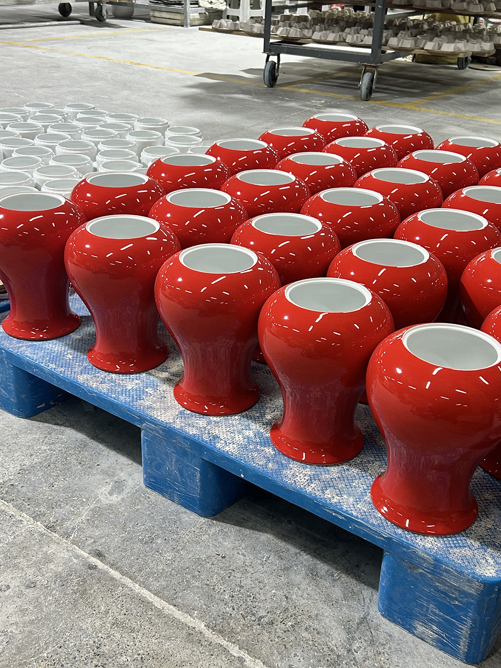 客戶找到我們,想要定制一批紅色的花瓶,將產品制作出來后,客戶很滿意!下面是產品的大貨圖: